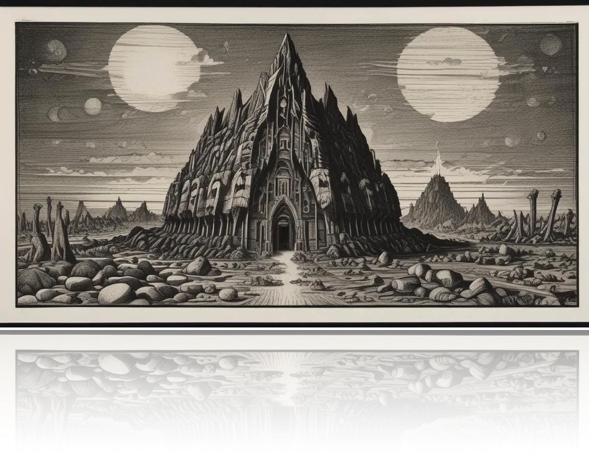 Clotho: (Speaking to him in a voice he can hear, but from a body he cannot see). Apocalyptic they repeat like song, as if no other word could be found. From where you stand, if you keep on walking you will reach a desert temple. Enter through the door should you desire more of what you’re after.